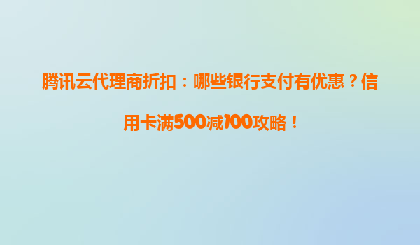 騰訊云代理商折扣與銀行支付優(yōu)惠全攻略——省錢上云必備指南!