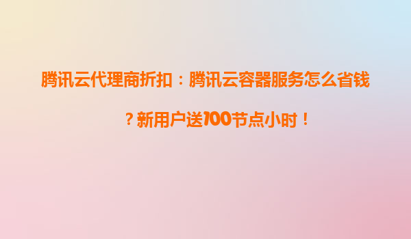騰訊云容器服務省錢攻略:新用戶專享100節點小時+代理商雙重優惠