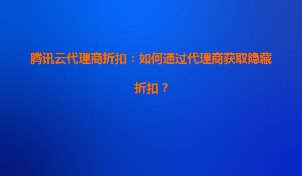 騰訊云代理商折扣:如何通過(guò)代理商獲取隱藏折扣?