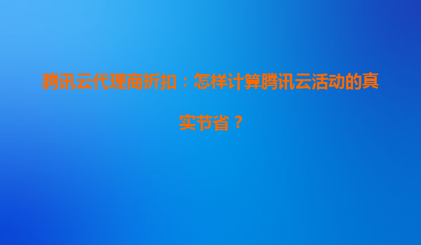 騰訊云代理商折扣:怎樣計(jì)算騰訊云活動(dòng)的真實(shí)節(jié)省?