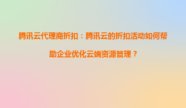 騰訊云代理商折扣:如何助力企業(yè)優(yōu)化云端資源管理?