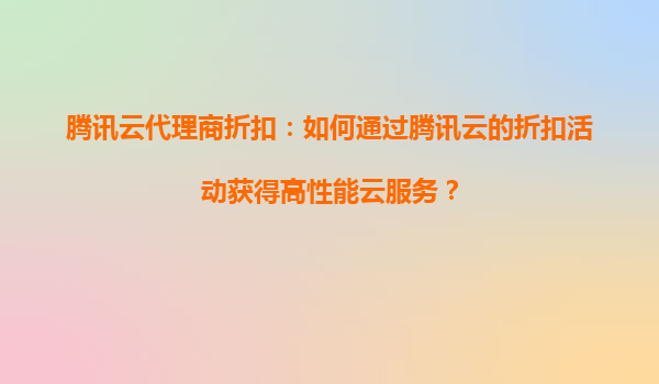 騰訊云代理商折扣:如何通過(guò)騰訊云的折扣活動(dòng)獲得高性能云服務(wù)?