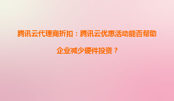 騰訊云代理商折扣:騰訊云優(yōu)惠活動(dòng)能否幫助企業(yè)減少硬件投資?