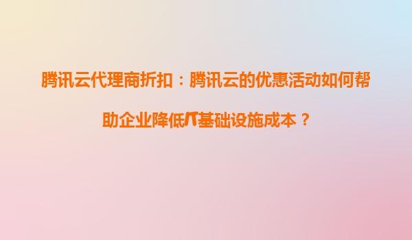 騰訊云代理商折扣:騰訊云的優(yōu)惠活動如何幫助企業(yè)降低IT基礎(chǔ)設(shè)施成本?