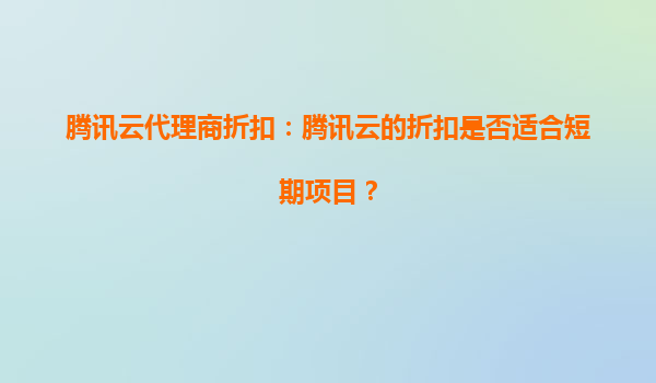 騰訊云代理商折扣:騰訊云的折扣是否適合短期項(xiàng)目?
