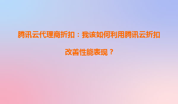 騰訊云代理商折扣:如何利用騰訊云折扣改善性能表現(xiàn)