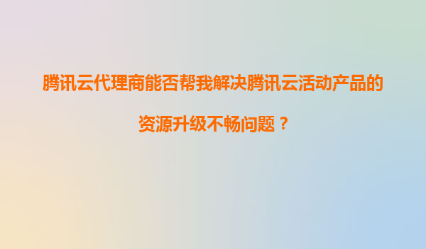 騰訊云代理商能否幫我解決騰訊云活動(dòng)產(chǎn)品的資源升級(jí)不暢問題?