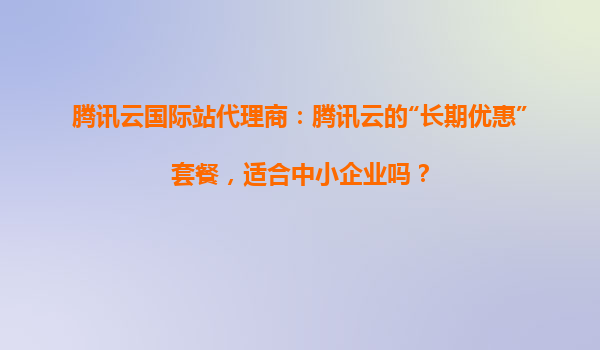 騰訊云國際站代理商:長期優(yōu)惠套餐是否適合中小企業(yè)?