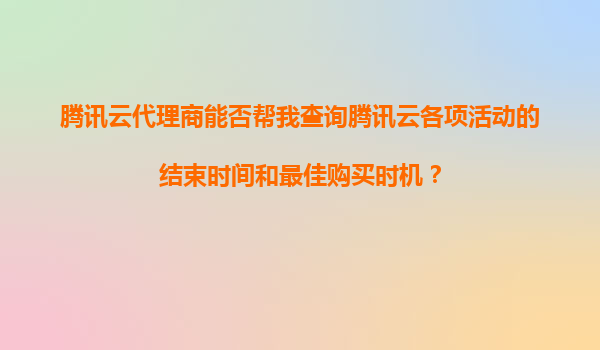 4008-020-360 騰訊云代理商的價(jià)值:如何查詢活動(dòng)截止時(shí)間與把握最佳購買時(shí)機(jī)? 一、為什么要關(guān)注騰訊云活動(dòng)的結(jié)束時(shí)間? 騰訊云作為國(guó)內(nèi)領(lǐng)先的云計(jì)算服務(wù)提供商,每年會(huì)推出數(shù)十場(chǎng)促銷活動(dòng),包括新用戶首購優(yōu)惠...
