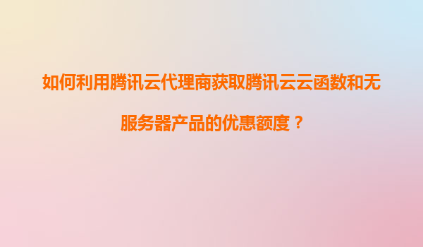 2025-11-04如何利用騰訊云代理商獲取騰訊云云函數(shù)和無服務(wù)器產(chǎn)品的優(yōu)惠額度? 一、騰訊云的核心優(yōu)勢 騰訊云作為國內(nèi)領(lǐng)先的云計(jì)算服務(wù)商,在無服務(wù)器計(jì)算領(lǐng)域具備以下顯著優(yōu)勢: ...