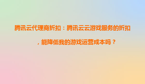 2025-11-01騰訊云代理商折扣:騰訊云云游戲服務(wù)的折扣能降低我的游戲運營成本嗎? 引言 隨著游戲行業(yè)的快速發(fā)展和全球化競爭加劇,降低運營成本成為游戲開發(fā)者和運營商的重要課題。騰訊云作為國內(nèi)領(lǐng)先的云計...
