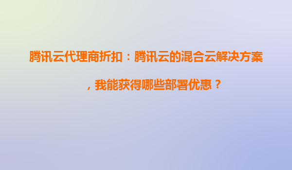 2025-10-31騰訊云混合云解決方案的部署優(yōu)惠 作為騰訊云代理商,我們致力于為客戶提供高效、靈活且高性價比的混合云解決方案。通過騰訊云的強(qiáng)大技術(shù)支持和豐富的產(chǎn)品矩陣,客戶可以在本地數(shù)據(jù)中心與云平臺之間實(shí)現(xiàn)無縫集成...