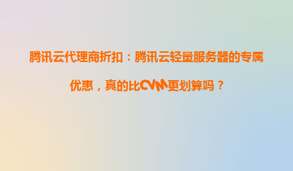 2025-10-29騰訊云代理商折扣:騰訊云輕量服務(wù)器的專屬優(yōu)惠,真的比CVM更劃算嗎? 騰訊云的核心優(yōu)勢 騰訊云作為中國領(lǐng)先的云計(jì)算服務(wù)提供商,憑借其強(qiáng)大的基礎(chǔ)設(shè)施、全球化的節(jié)點(diǎn)布局和穩(wěn)定的性能表...