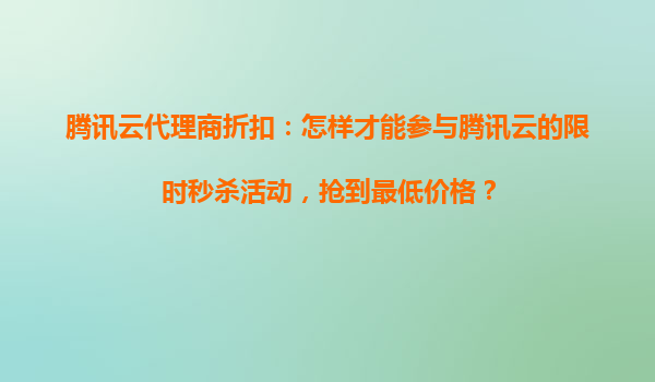 2025-10-24騰訊云代理商折扣:怎樣才能參與騰訊云的限時(shí)秒殺活動(dòng),搶到最低價(jià)格? 一、騰訊云的優(yōu)勢(shì)與代理商折扣的價(jià)值 騰訊云作為國內(nèi)領(lǐng)先的云計(jì)算服務(wù)提供商,憑借其穩(wěn)定的性能、全面的產(chǎn)品線以及強(qiáng)大的技...