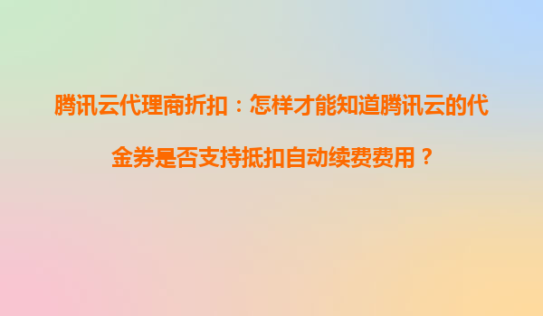 2025-10-24騰訊云代理商折扣:代金券能否抵扣自動(dòng)續(xù)費(fèi)費(fèi)用? 騰訊云作為國內(nèi)領(lǐng)先的云計(jì)算服務(wù)提供商,不僅提供穩(wěn)定高效的云服務(wù),還通過代理商折扣和代金券等優(yōu)惠政策,幫助用戶降低使用成本。許多用戶在使用騰訊云服務(wù)時(shí)...