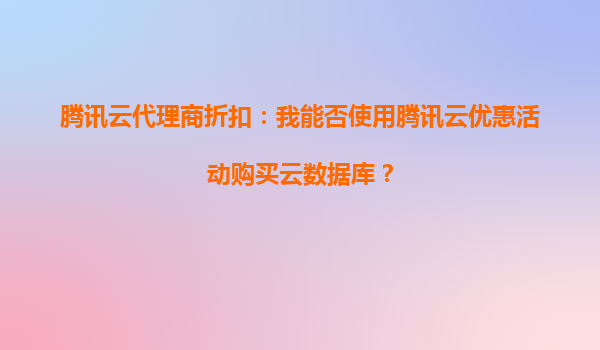 4008-020-360 騰訊云代理商折扣:解鎖云數(shù)據(jù)庫(kù)優(yōu)惠新姿勢(shì) 在數(shù)字化轉(zhuǎn)型的浪潮中,企業(yè)上云已成為不可逆的趨勢(shì)。作為國(guó)內(nèi)領(lǐng)先的云服務(wù)提供商,騰訊云以其卓越的性能、穩(wěn)定的服務(wù)和靈活的計(jì)費(fèi)模式贏得了廣大用戶的青睞。對(duì)于預(yù)...