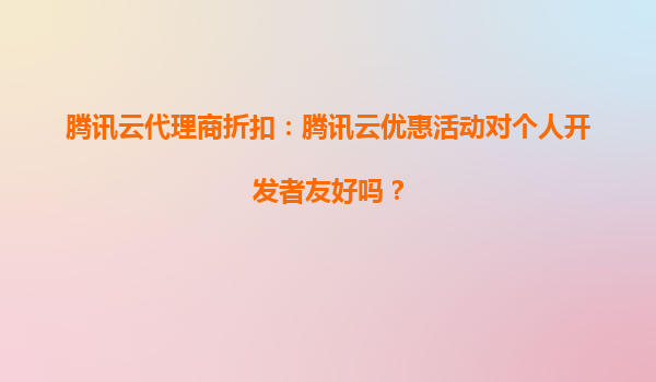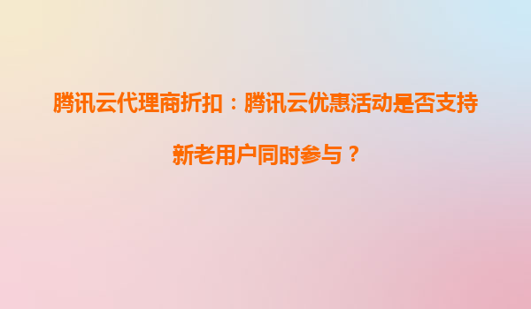 4008-020-360 騰訊云代理商折扣:騰訊云優(yōu)惠活動(dòng)是否支持新老用戶同時(shí)參與? 一、騰訊云優(yōu)惠活動(dòng)概述 騰訊云作為國(guó)內(nèi)領(lǐng)先的云計(jì)算服務(wù)提供商,長(zhǎng)期推出各類優(yōu)惠活動(dòng),旨在為企業(yè)及個(gè)人開發(fā)者提供高性價(jià)比的云服務(wù)。...