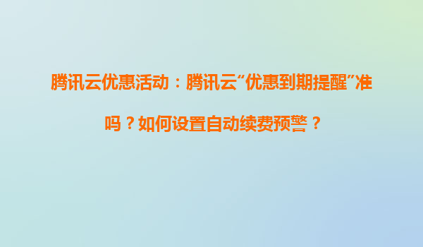 2025-04-03騰訊云優(yōu)惠活動(dòng)到期提醒與自動(dòng)續(xù)費(fèi)預(yù)警設(shè)置全解析 一、騰訊云的核心優(yōu)勢(shì)解析 在探討優(yōu)惠到期提醒機(jī)制前,需先理解騰訊云的核心競(jìng)爭(zhēng)力: 金融級(jí)穩(wěn)定性-基于QQ/微信同源技術(shù)架構(gòu),提供99.99%...