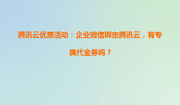 2025-04-03騰訊云優(yōu)惠活動(dòng):企業(yè)微信綁定騰訊云,解鎖專屬代金券與多重優(yōu)勢(shì) 一、企業(yè)微信綁定騰訊云,專屬代金券福利直達(dá) 騰訊云為助力企業(yè)數(shù)字化轉(zhuǎn)型,推出重磅優(yōu)惠活動(dòng):企業(yè)用戶通過(guò)綁定企業(yè)微信與騰...