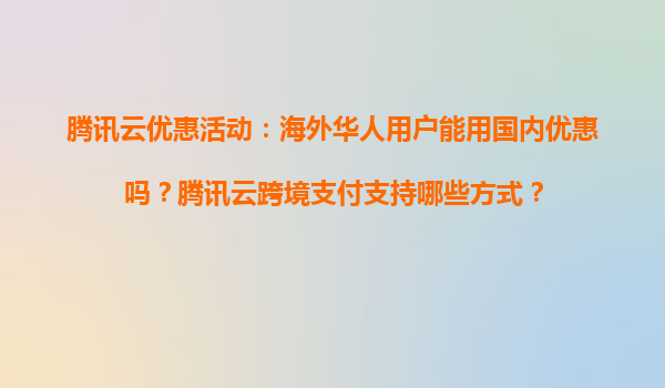 2025-04-03騰訊云優(yōu)惠活動(dòng)詳解:海外華人用戶專享指南與跨境支付方式全解析 一、騰訊云海外華人用戶能否參與國(guó)內(nèi)優(yōu)惠活動(dòng)? 騰訊云為全球用戶提供普惠性云計(jì)算服務(wù),針對(duì)海外華人用戶推出專項(xiàng)政策: ...