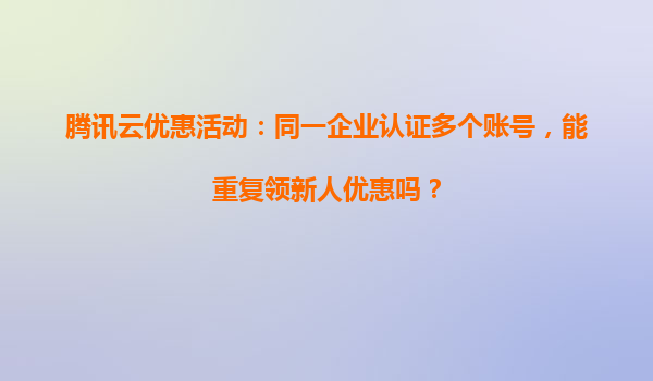 2025-04-03騰訊云優(yōu)惠活動(dòng)解析:企業(yè)認(rèn)證多賬號能否重復(fù)領(lǐng)取新人優(yōu)惠? 一、關(guān)于企業(yè)認(rèn)證多賬號領(lǐng)取優(yōu)惠的核心問題 根據(jù)騰訊云官方規(guī)則,同一企業(yè)實(shí)名認(rèn)證的多個(gè)賬號無法重復(fù)領(lǐng)取新人專屬優(yōu)惠。騰...