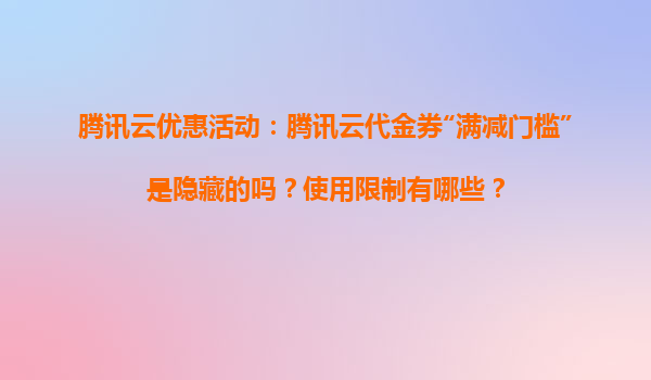 2025-04-03騰訊云優(yōu)惠活動(dòng):代金券使用規(guī)則與隱藏門檻解析 在云計(jì)算市場競爭日益激烈的今天,騰訊云憑借其強(qiáng)大的技術(shù)實(shí)力和靈活的優(yōu)惠政策持續(xù)吸引用戶關(guān)注。其中,“代金券滿減活動(dòng)”作為熱門促銷方式,用戶...