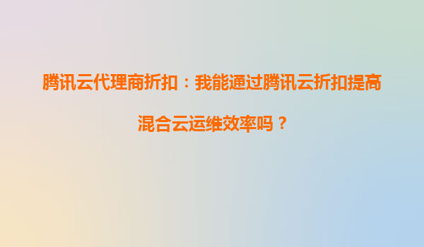 2025-10-07騰訊云代理商折扣:我能通過騰訊云折扣提高混合云運(yùn)維效率嗎? 一、騰訊云代理商折扣的核心價(jià)值 騰訊云代理商折扣是企業(yè)用戶通過官方授權(quán)渠道購買云服務(wù)時(shí)享受的優(yōu)惠方案,通常涵蓋計(jì)算、存儲(chǔ)、網(wǎng)絡(luò)...