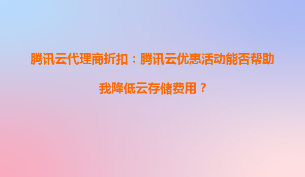 4008-020-360 騰訊云代理商折扣:騰訊云優(yōu)惠活動(dòng)能否幫助我降低云存儲(chǔ)費(fèi)用? 一、騰訊云存儲(chǔ)的核心優(yōu)勢(shì) 騰訊云作為國內(nèi)領(lǐng)先的云服務(wù)提供商,其云存儲(chǔ)服務(wù)(如COS對(duì)象存儲(chǔ))具備以下核心優(yōu)勢(shì): ...