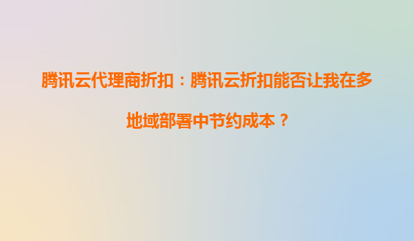 2025-10-06騰訊云代理商折扣:騰訊云折扣能否讓我在多地域部署中節(jié)約成本? 引言 在當(dāng)今數(shù)字化時(shí)代,云計(jì)算已成為企業(yè)IT基礎(chǔ)設(shè)施的核心組成部分。無論是初創(chuàng)公司還是大型...