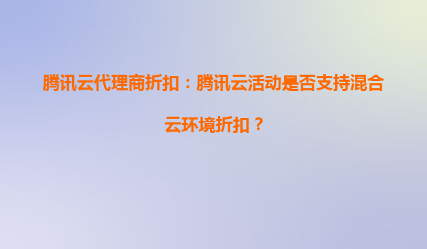 2025-10-06騰訊云代理商折扣:混合云環(huán)境也能享受優(yōu)惠 騰訊云作為國(guó)內(nèi)領(lǐng)先的云計(jì)算服務(wù)提供商,憑借其強(qiáng)大的技術(shù)實(shí)力和豐富的產(chǎn)品線,為企業(yè)用戶提供了全方位的云服務(wù)解決方案。其中,騰訊云代理商折扣政策更是吸引了眾多...