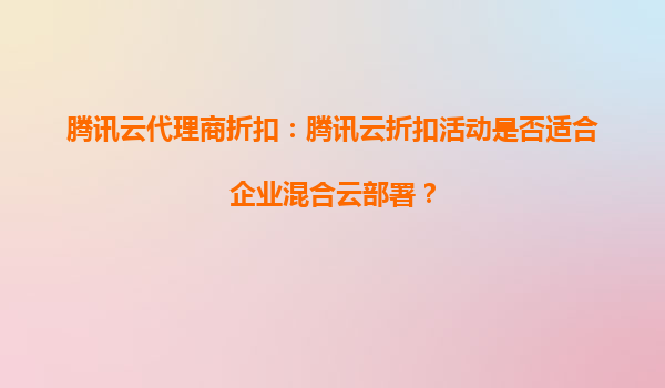 2025-10-05騰訊云代理商折扣:騰訊云折扣活動(dòng)是否適合企業(yè)混合云部署? 引言 隨著數(shù)字化轉(zhuǎn)型的加速,越來(lái)越多的企業(yè)開(kāi)始采用混合云架構(gòu)來(lái)平衡成本、靈活性和安全性。騰訊云作為國(guó)內(nèi)領(lǐng)先的云服務(wù)提供商,不僅提供強(qiáng)大...