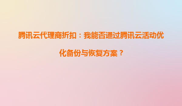 2025-10-05騰訊云代理商折扣:如何通過(guò)騰訊云活動(dòng)優(yōu)化備份與恢復(fù)方案? 一、騰訊云備份與恢復(fù)的核心價(jià)值 在數(shù)字化轉(zhuǎn)型的浪潮中,數(shù)據(jù)已成為企業(yè)的核心資產(chǎn)。騰訊云提供的...