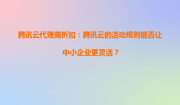 2025-10-01騰訊云代理商折扣:騰訊云的折扣是否包括云安全服務(wù)? 一、騰訊云代理商折扣概述 騰訊云作為國(guó)內(nèi)領(lǐng)先的云計(jì)算服務(wù)提供商,通過(guò)代理商體系為客戶提供更靈活的購(gòu)買(mǎi)方式和更具競(jìng)爭(zhēng)力的價(jià)格。代理商折扣是騰訊...