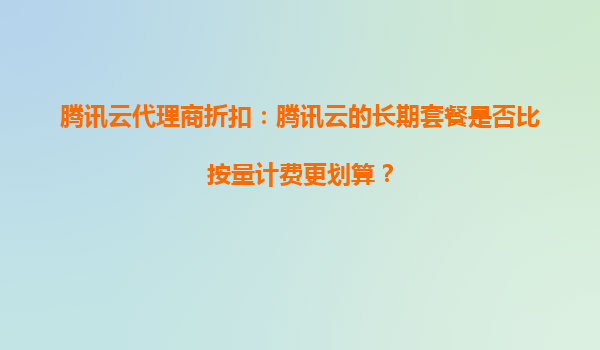 2025-09-27騰訊云代理商折扣:長(zhǎng)期套餐是否比按量計(jì)費(fèi)更劃算? 引言 隨著云計(jì)算服務(wù)的普及,越來(lái)越多的企業(yè)和個(gè)人開(kāi)始選擇云服務(wù)提供商來(lái)滿(mǎn)足自身的IT需求。騰訊云作為國(guó)...