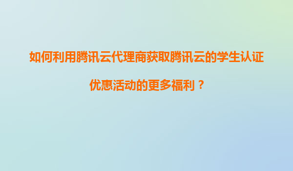 2025-11-06如何利用騰訊云代理商獲取騰訊云學(xué)生認(rèn)證優(yōu)惠活動(dòng)的更多福利? 引言 對于學(xué)生開發(fā)者而言,云計(jì)算服務(wù)是學(xué)習(xí)、實(shí)踐和項(xiàng)目開發(fā)的重要工具。騰訊云作為國內(nèi)領(lǐng)先的...