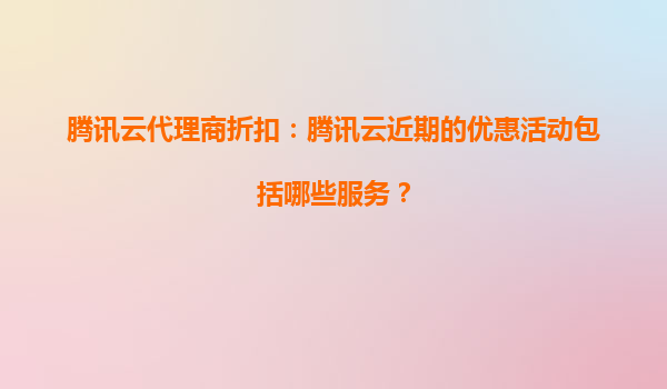 2025-09-20騰訊云代理商折扣:我是否可以用騰訊云折扣購買多種服務? 一、騰訊云的核心優(yōu)勢 騰訊云作為國內(nèi)領(lǐng)先的云計算服務商,提供包括云服務器、數(shù)據(jù)庫、存儲、CDN、AI等在內(nèi)的200+種產(chǎn)品,覆蓋全球2...