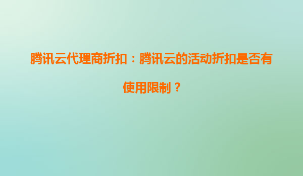 4008-020-360 騰訊云代理商折扣:騰訊云的活動折扣是否有使用限制? 一、騰訊云活動折扣的常見使用限制 騰訊云作為國內(nèi)領(lǐng)先的云計算服務商,經(jīng)常通過代理商或官方渠道推出各類折扣活動。但這些優(yōu)惠通...