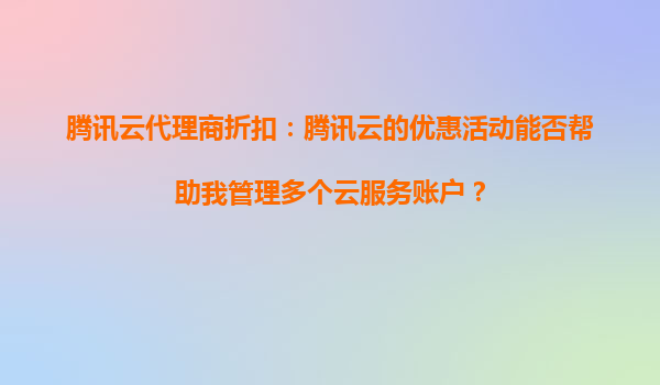 2025-09-20騰訊云代理商折扣:如何通過(guò)優(yōu)惠活動(dòng)高效管理多個(gè)云服務(wù)賬戶? 引言 隨著企業(yè)數(shù)字化轉(zhuǎn)型的加速,多云戰(zhàn)略逐漸成為主流,許多用戶需要同時(shí)管理多個(gè)云服務(wù)賬戶以...