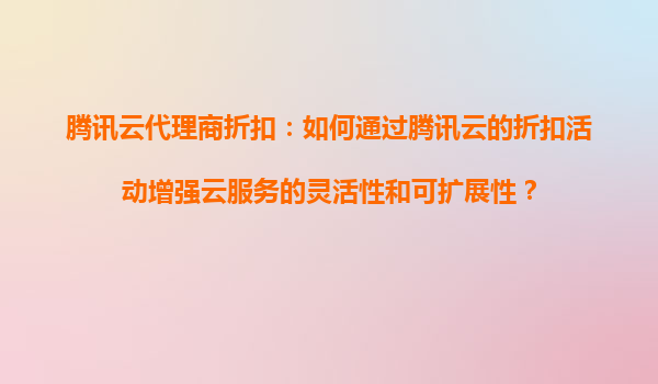 2025-09-20騰訊云代理商折扣:騰訊云的優(yōu)惠活動(dòng)能否幫助我實(shí)現(xiàn)跨區(qū)域的負(fù)載均衡? 騰訊云代理商折扣的優(yōu)勢(shì)解析 騰訊云代理商提供的折扣活動(dòng),能夠?yàn)橛脩魩?lái)顯著的成本節(jié)...