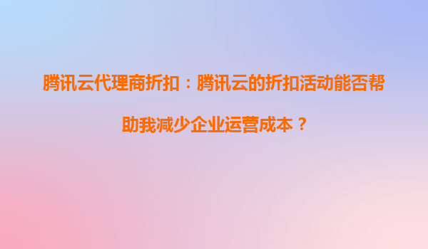 2025-09-19騰訊云代理商折扣:如何通過(guò)騰訊云的折扣活動(dòng)優(yōu)化我的IT基礎(chǔ)架構(gòu)? 一、騰訊云的核心優(yōu)勢(shì) 騰訊云作為國(guó)內(nèi)領(lǐng)先的云計(jì)算服務(wù)提供商,憑借其強(qiáng)大的技術(shù)實(shí)力和豐富的產(chǎn)品生態(tài),為企業(yè)提供了穩(wěn)定、高效且靈...