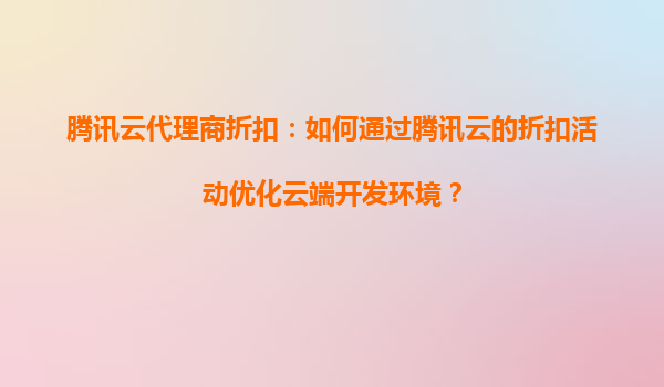 4008-020-360 騰訊云代理商折扣:利用優(yōu)惠活動提升服務(wù)器性能的全面指南 騰訊云代理商折扣的價(jià)值 騰訊云作為國內(nèi)領(lǐng)先的云計(jì)算服務(wù)提供商,通過官方代理商渠道為用戶提供專屬折扣活動。這些折扣不僅能顯著降低用戶上云成本...