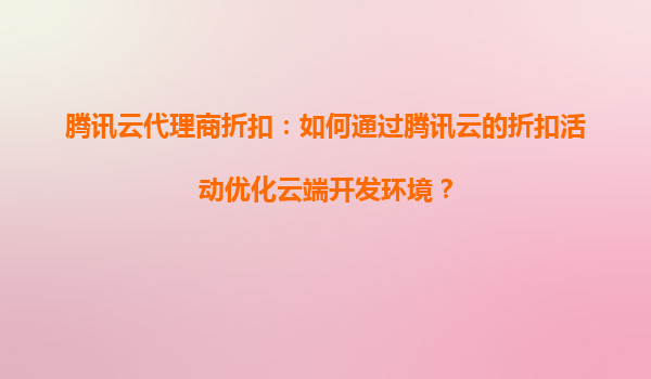 4008-020-360 騰訊云代理商折扣:如何通過騰訊云的折扣活動(dòng)優(yōu)化云端開發(fā)環(huán)境? 一、騰訊云的核心優(yōu)勢(shì)與開發(fā)者價(jià)值 作為國內(nèi)領(lǐng)先的云計(jì)算服務(wù)商,騰訊云為開發(fā)者提供了完整的云端支持體系: ...