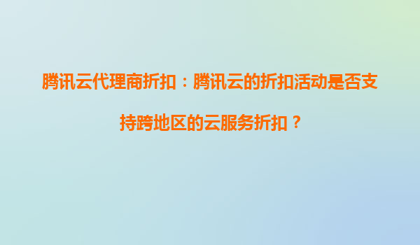 2025-09-17騰訊云代理商折扣:跨地區(qū)云服務(wù)折扣解析與騰訊云優(yōu)勢 一、騰訊云代理商折扣活動(dòng)概述 騰訊云作為國內(nèi)領(lǐng)先的云計(jì)算服務(wù)提供商,通過代理商體系為客戶提供靈活的折扣方案。代理商折扣通常覆蓋計(jì)算、存儲、數(shù)...