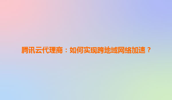 騰訊云代理商:如何高效實現(xiàn)跨地域網(wǎng)絡(luò)加速