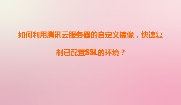 2025-11-05如何利用騰訊云服務器的自定義鏡像,快速復制已配置SSL的環(huán)境? 一、引言 隨著企業(yè)業(yè)務的快速發(fā)展,快速部署已配置SSL的網(wǎng)絡(luò)環(huán)境成為許多企業(yè)的需求。使用騰訊云服務器的自定義鏡像功能,可以...