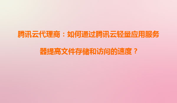 2025-09-06騰訊云代理商:如何通過騰訊云輕量應用服務器提高文件存儲和訪問的速度? 一、騰訊云輕量應用服務器的核心優(yōu)勢 作為領先的云計算服務商,騰訊云的輕量應用服務器(Tence...