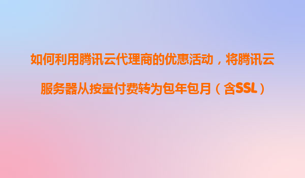 2025-11-05如何利用騰訊云代理商的優(yōu)惠活動(dòng),將騰訊云服務(wù)器從按量付費(fèi)轉(zhuǎn)為包年包月(含SSL)? 一、了解騰訊云的優(yōu)勢 騰訊云作為國內(nèi)領(lǐng)先的云計(jì)算服務(wù)提供商,擁有高性能的服務(wù)器資源、穩(wěn)定的網(wǎng)絡(luò)環(huán)境和完...