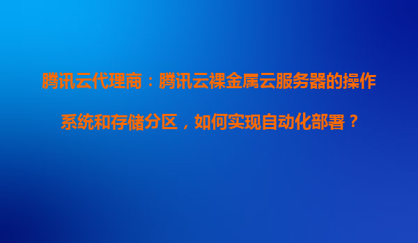 2025-10-25騰訊云代理商:騰訊云裸金屬云服務(wù)器的操作系統(tǒng)和存儲分區(qū)自動化部署指南 引言 在當(dāng)今數(shù)字化時(shí)代,企業(yè)對于高效、靈活的云計(jì)算基礎(chǔ)設(shè)施需求日益增長。作為國內(nèi)領(lǐng)先的云計(jì)算服務(wù)提供商,騰訊云憑借其強(qiáng)...
