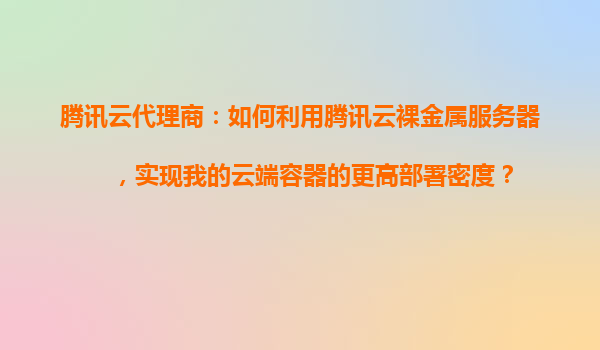2025-10-25騰訊云代理商指南:如何利用騰訊云裸金屬服務(wù)器實(shí)現(xiàn)云端容器更高部署密度 引言 隨著云計(jì)算技術(shù)的快速發(fā)展,容器化部署已成為企業(yè)構(gòu)建現(xiàn)代化應(yīng)用的主流選擇。然而,傳統(tǒng)的虛擬化...