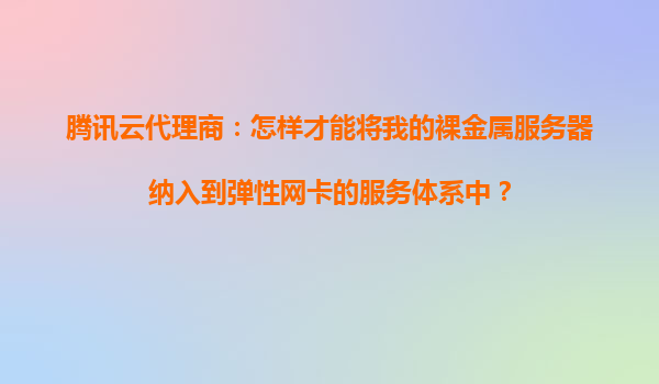 2025-10-26騰訊云代理商:如何將裸金屬服務(wù)器納入彈性網(wǎng)卡服務(wù)體系 一、裸金屬服務(wù)器與彈性網(wǎng)卡的價(jià)值結(jié)合 裸金屬服務(wù)器(BareMetalServer)提供物理機(jī)級別的性能隔離和資源獨(dú)享,適合高性能計(jì)算、金融交...